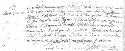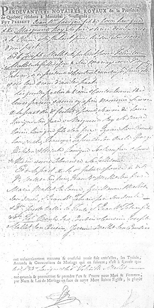 ![]() Marriage of Louis Tessier & Louise Pepin dit Laforce Sept. 27, 1734, Montreal |