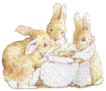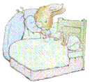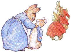 ![]() Once upon a time there were four little Rabbits, and their names were-- Flopsy, Mopsy, Cotton-tail, and Peter. They lived with their Mother in a sand-bank, underneath the root of a very big fir-tree.'Now, my dears,' said old Mrs. Rabbit one morning, 'you may go into the fields or down the lane, but don't go into Mr. McGregor's garden: your Father had an accident there; he was put in a pie by Mrs. McGregor.'