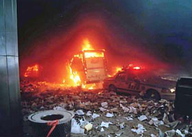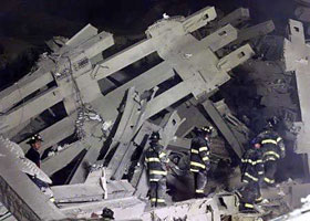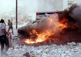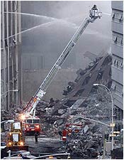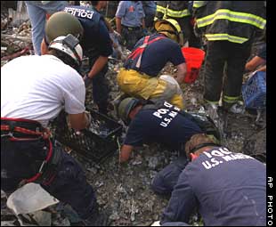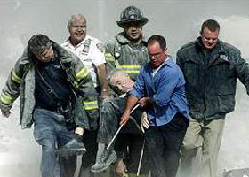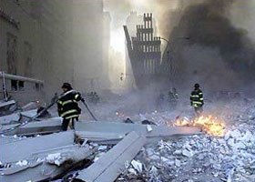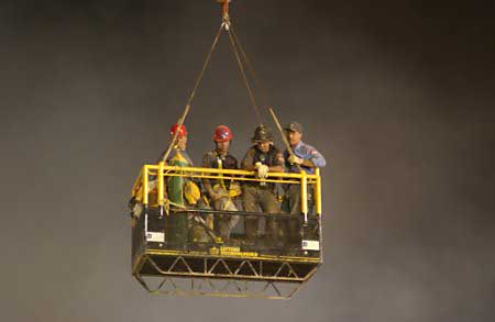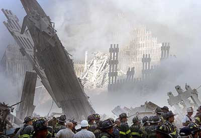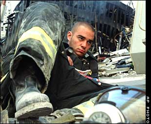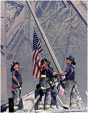 Somebody hang up a photo from a missed firefighter Firefighters Raise Flag At the WTC