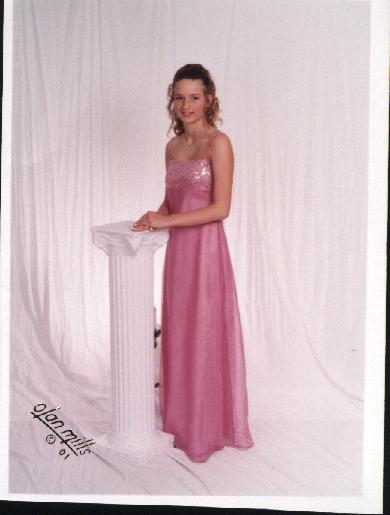 This was taken before she went to the PHS prom of 2001. To be honest I do not know why she wore those things on her arms so don't ask..I could not tell you why.