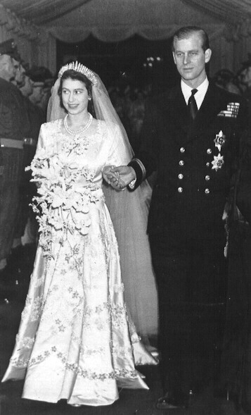 On 20th November the wedding took place at Westminster Abbey, being the first major gathering of the European Royalty since the War had ended. Thousands of people gathered in London to watch the processions, which left Buckingham Palace shortly before the ceremony. Queen Elizabeth drove with Princess Margaret in the Glass Coach and were followed by the King and Princess Elizabeth in the Irish State Coach. On the eve, Philip had been given the style of His Royal Highness and the title of Duke of Edinburgh. He arrived almost unnoticed at Westminster, having entered by a side door while the Queen and Princess Margaret were entering through the Great West Door.