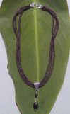 3 strands of solid garnet round beads and a pendant made with a fancy silver slide bail, an oval garnet measuring 1/2" long and a faceted rectangle garnet.