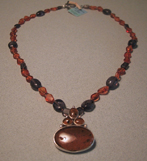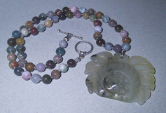 dynasty pottery pendant with olivestone beads. Hand knotted on