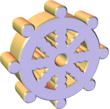 One day, Siddhartha realized that his years of penance only weakened his body, and he could not continue to meditate properly. When he stepped into the river to bathe, he was too weak to get out, and the trees lowered their branches to help him. In that instant, a milk-maid named Nandabala came and offered a bowl of milk and rice, which Siddhartha accepted. The five holy men left Siddhartha after witnessing this. Refreshed by the meal, Siddhartha sat down under a fig tree (often refered to as the Bo tree, or Tree of Enlightenment) and resolved to find out an answer to life and suffering. While meditating, Mara (an evil god) sent his three sons and daughters to tempt Siddhartha with thirst, lust, discontent, and distractions of pleasure. Siddhartha, unswayed, entered a deep meditation, and recalled all his previous rebirths, gained knowledge of the cycle of births and deaths, and with certainty, cast off the ignorance and passion of his ego which bound him to the world. Thereupon, Siddhartha had attained enlightenment and became the Buddha (enlightened one). His own desire and suffering were over and, as the Buddha, he experienced Nirvana... "There is a sphere which is neither earth, nor water, nor fire, nor air...which is neither this world nor the other world, neither sun nor moon. I deny that it is coming or going, enduring, death or birth. It is only the end of suffering." Instead of casting off his body and his existence, however, Buddha made a great act of self-sacrifice. He turned back, determined to share his enlightement with others so that all living souls could end the cycles of their own rebirth and suffering.