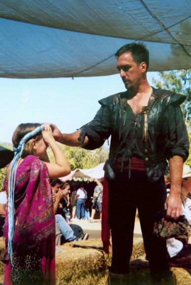 Although it rather looks like he is bestowing his blessing on this little girl, Broon is, in fact, pulling her headdress thing down over her eyes. Again and again and again. Kids love Broon.