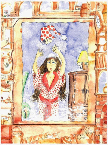 cap jumped off of her head and shot across the floor, laughing