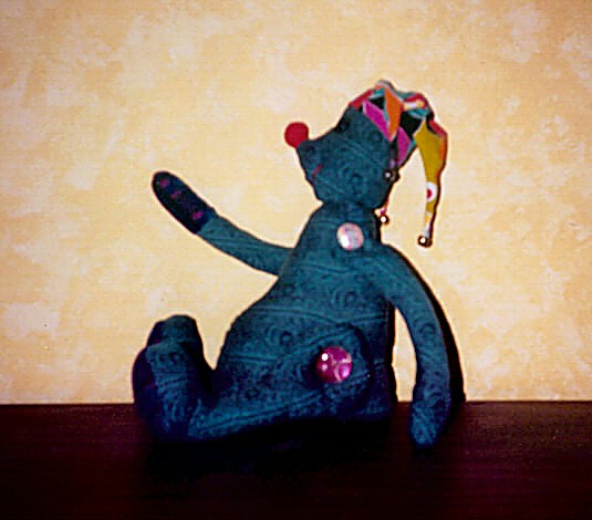 This is Yorrick, a bear of infinite jest. He, too, was a gift to a fellow actor-type. She played Hamlet along with me and one other woman in an unusual adaption of Hamlet. A very unusual adaptation of Hamlet. See Next Creation See Previous Creation Return to Redcap Creations