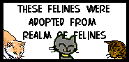 Here you can adopt a feline for your site to care for.Just right-click any felines with the certificate which is if you're adopting a tiger,save the tiger certificate,if you're adopting a lion,save the lion certificate but if you would like to adopt both felines,save the feline certificate!Easy.After you've right-click them,please fill your information at the form below to let me know that you're adopting the felines.At the "Which feline",you must put either lion,tiger or both tiger and lion.Please be honest and do not put these felines into your adopt-a-feline page!They're copyright to me.And when you're linking back to me,link me by the certificate,not the felines.And do not direct link.Link it to: https://www.angelfire.com/realm2/tigerclaws .Thanks and happy adopting!
