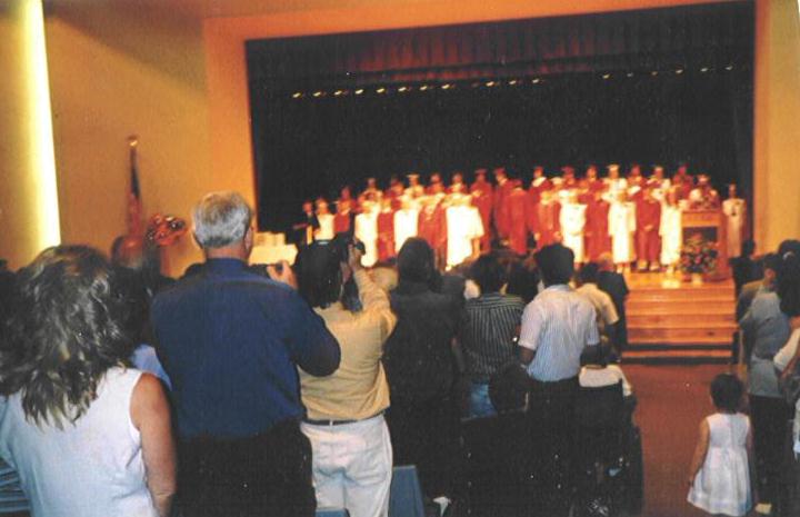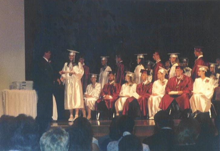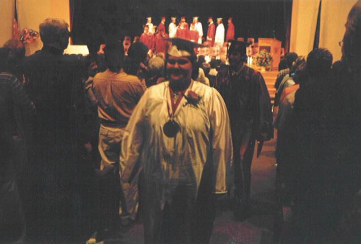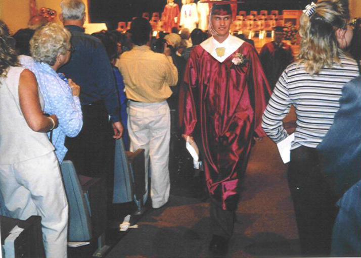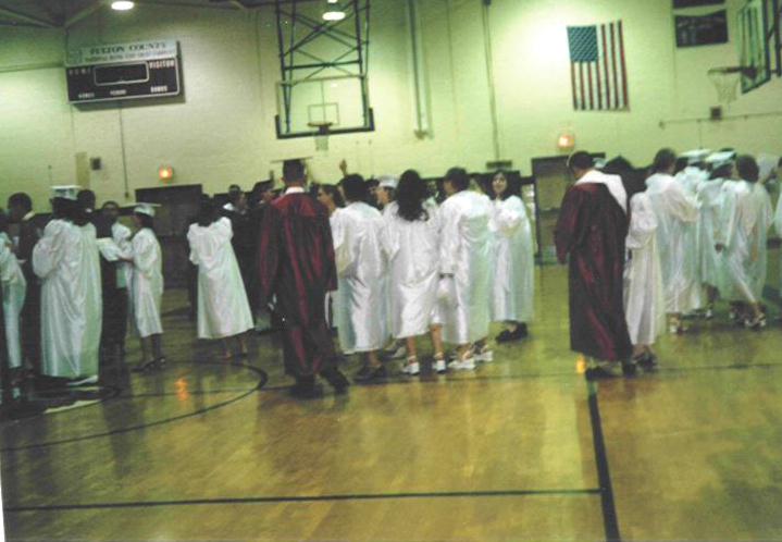 Note: The reason there isn't too many pics is because mom had the video-camera rollin' the whoel time. This was an exciting day to say the least. I was so proud and happy. The whole ceremony only lasted about 1 1/2 hours and then after we all got out into the hallway from marching out, we were all screaming and we ran into the gym and threw our hats in the air and screamed and hugged our friends. It was a beautiful day...then came the after-parties.))