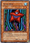 Well this week we have Christmas theming for our card of the days, and we start off with Star Boy. A decent card. It fits well in a deck with cards like 7 Colored Fish, Giant Red Sea Snake and Suijin, not too mention the Legendary Fisherman. But that's where the usefullness of this card ends. It can be trap-holed by it's own effect because it'll increase to 1050 attack. If your running an aqua/water themed deck than this baby can be damn sure good. Even though many people don't run fire themed decks, with this card on the field, you can turn a Suijin into a Blue Eyes White Dragon for a turn or two. Rating-2.5/5 |