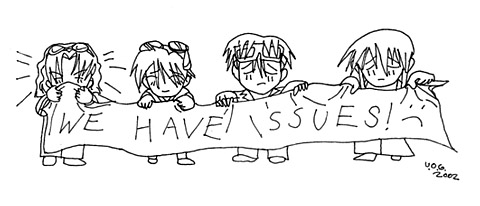 | The owners of this page make no claim to any work of fiction, Western, Eastern, or Terran, they many have made reference to or used for characters from during the course of executing the fics on this page. This page coded in FrontPage by Vanyel Askevron the Lesser. Graphics not text used with the permission of... | |