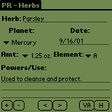Here is a little program for everyone that has a pda. It is called Pagan Resource by glitchware. You can keep track of holidays, recipes, herbs and more right on your palm pda.
