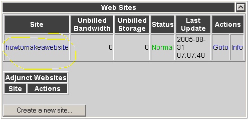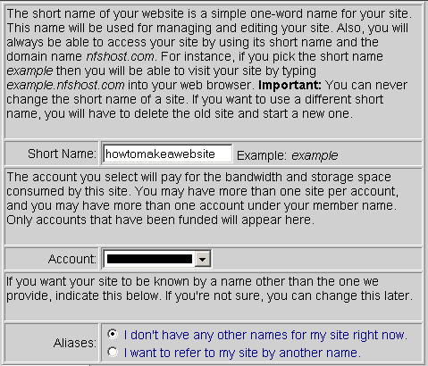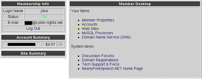 On the Member Desktop, click on "Web Sites", then click on "Create a New Site". Then the screen below will come up.