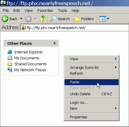 Click on the circled link. This is an FTP and not the usual "http" and it goes slower, so be patient. At first, you may get an error page. Then hit refresh in your browser. It should come up with a blank screen. Now go into the folder on your hard drive where your website is stored in. Copy everything that's in that folder and then go to the FTP screen and paste it.