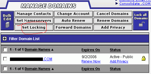 Select the domain to unlock; in this case there's only one. Next, click "Set Locking"