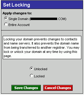 On the next screen, you have to first unlock your account before you can modify it, though if the name servers have already been entered, you should haven't to change anything. I still like to double check to make sure they are entered correctly.
