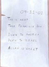 LEFT: THE ANTHRAX LETTERS, AN OBVIOUS FRAME UP ATTEMPT