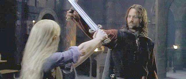 Dúnedain chieftain of Arnor. At the time of the War of the Ring, Aragorn II was the sixteenth and last chieftain of the Dúnedain. Born in 2931 of the Third Age, Aragorn was raised by Elrond Half-Elven in Rivendell. When Aragorn was twenty he met Elrond's daughter, Arwen, and then the couple fell in love. However, Elrond would not permit the marriage until Aragorn became the rightful king of Arnor and Gondor. To this end, Aragorn travelled widely and fought for the rights of the Free Peoples. He went by many names: Ecthelion, Thorongil, Elfstone, Elessar and Strider. As a Dúnedain lord, Aragorn was blessed with a lifespan three times that of other Men. In 2956 he met Gandalf the Wizard and they became friends and allies. In 3018, he came to Bree where he met the Hobbit Ringbearer, Frodo Baggins, and in Rivendell he became one of the Fellowship of the Ring. After Gandalf was lost to the Balrog of Moria, Aragorn became the leader of the Fellowship. In the War of the Ring, Aragorn played a prominant role in routing Saruman's army at Hornburg. He commanded the Dead Men of Dunharrow and captured the fleet at Pelargir. His arrival with new allies at the Battle of Pelennor Fields saved Gondor, and he commanded the Army of the West at the Black Gate of Mordor. After the war, Aragorn became King Elessar of the Reunited Kingdom and married Arwen. During the next century of his reign, Aragorn extended his kingdom to most of the western lands of Middle-earth. With Arwen, he had several daughters and one son, Eldarion. After Aragorn's death in 120 of the Fourth Age, his son became king ruling long and well.
