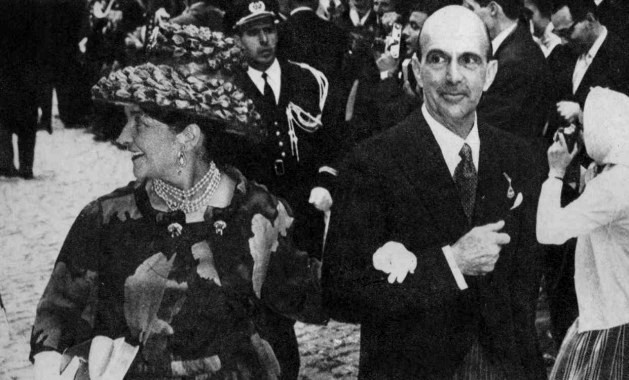 In 1964, on the wedding day of her daughter, HRH Princess Claude of France, to HRH The Duke of Aosta, Madame is accompanied by HM King Umberto II of Italy. The wedding took place in Portugal.