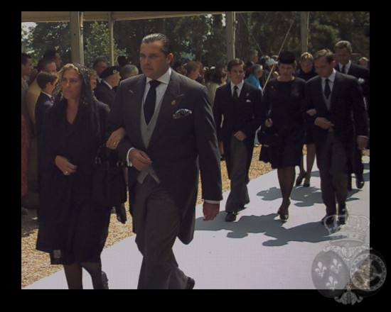 The children of TRH Prince and Princess Michel of France, Comte and Comtesse d'Evreux, make their way to the Chapel: in the front, HRH Princess Clotilde of France, Mme Edouard Crépy, and her brother, HRH Prince Charles-Philippe (who had before accompanied his girlfriend, Miss Elisabeth d'Udekem d'Acoz, sister of HRH Princess Mathilde of Belgium, Duchess of Brabant, to the chapel). Behind, HRH Prince François, HRH Princess Adélaïde and her husband Mr. Pierre Dailly.