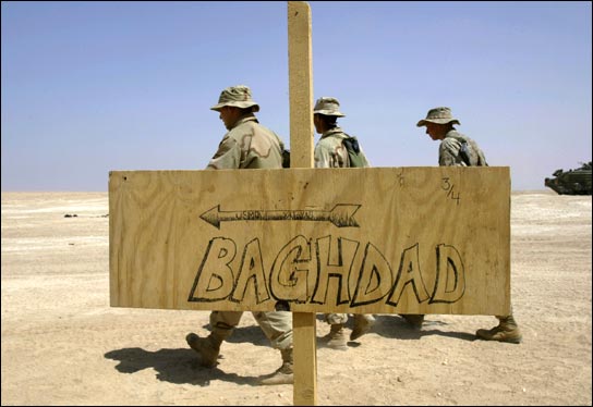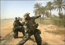 Marines from the 1st Marine Division in Northern Kuwait get ready to