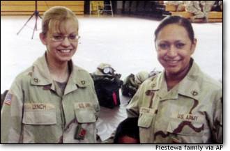 Pfcs. Lori Piestewa, right, and Jessica Lynch pose at Fort Bliss,