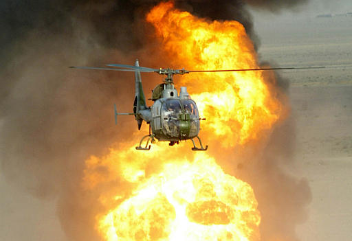 Brigade passes a fire in the Ramala oil fields west of Basra |