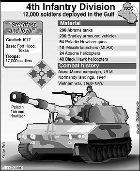 in the US Fourth Infantry, which is moving into southern Iraq to