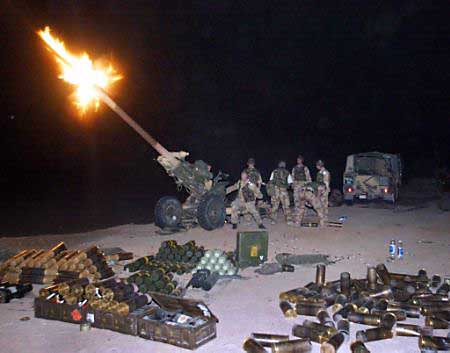Regiment fire their 105mm light guns from a position in the Kuwait