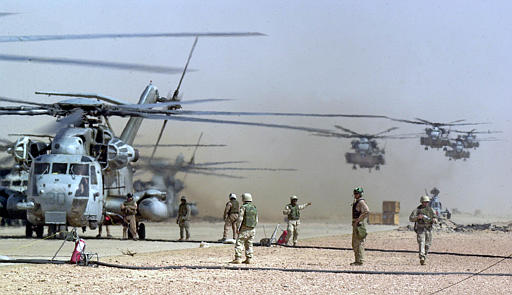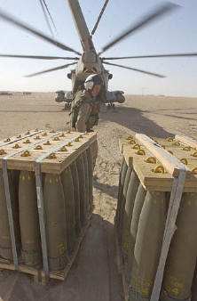 loading them onto a CH-53E Sea Stallion Friday, March 28, 2003 in