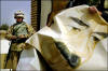 | Friday the troops went in, facing light resistance from Iraqi soldiers on the way toward the strategically important port city of Basra. Here, U.S. Marines from the 15th Marine Expeditionary Unit take firing position after hearing the sound of gunfire | Marines of the U.S. Marine Expeditionary Unit take cover from Iraqi fire as British artillery rounds explode behind during the early stage of the push into southern Iraq to take control of the main port of Umm Qasr | A U.S. Marine pulls down a poster of Saddam Hussein in Safwan, Iraq |