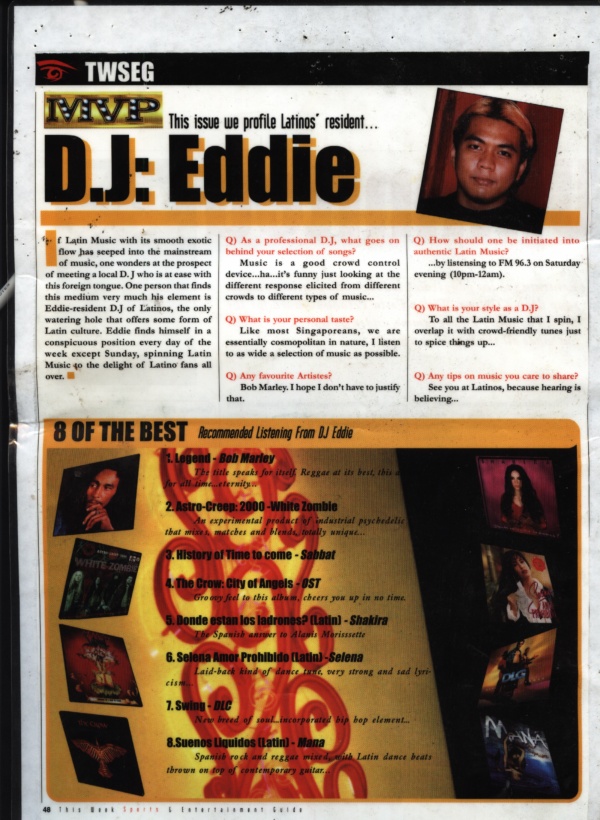 I used to be a resident DJ in a latin club “Latinos Mi casa Su casa”,which was situated in Liat Towers in Orchard Road some years back.It was the first club of it’s kind to play strictly latin music.