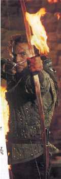 Ironically, Errol Flynn's benchmark The Adventures of Robin Hood was filmed during the Depression. The production was the most elaborate and expensive that, Warner Bros. had ever undertaken. Problems developed quickly during the filming. The set was not a happy one and producer Hal Wallis fired off a flurry of telegrams to director William Keighley. To break the tension, Flynn spent the evenings drinking and wenching and playing poker,according to his biographer Charles Higham. The star rewrote dialogue and complained about his wig, beard and makeup. He was so insubordinate that he was brought before the Screen Actors Guild for holding up the production: Two weeks behind schedule and vastly over budget, the movie was spiraling out of control. Keighley was, fired, and Michael Curtiz was hired to deal with the difficult actor. The film, though, was an enormous hit, endearing Flynn to legions of moviegoers. Higham wrote, "He was sinewy, lithe, muscular, and arrogantly sexual. He laughed: his eyes sparkled: his cheeks flushed. He seemed more alive than anyone else.” This time around, the 36-year old Costner plays it tougher. His Robin Hood is less arrogantly sexual and more brooding, like Indiana Jones. He also has Morgan Freeman playing his Moorish sidekick. For the Clearasil set, Christian Slater appears as Will Scarlet, and in a stroke of luck, the producers were able to secure the services of Sean Connery in a cameo as King Richard the Lion-Hearted. Costner has been sparring with various companies that want to use his Robin Hood likeness. He endorsed the action figures but “stopped about 300 things”, including beach towels, sheets and a Taco Bell tie-in. “I don’t want everyone eating tacos on a paper place mat of me”. To avoid Errol Flynn’s wig problems, Costner has brought his own hairdresser to England. He worked with a dialect coach for several weeks at the start of production but decided not to go with a British accent. He also offered numerous suggestions to Bloomfield, whose rough-hewn, historically correct costumes are a far cry from the elf hat and tights. Still, there are echoes of 1938, at least in the difficulty surrounding this new production. Reynolds had had ten weeks of prep time when he took the job last year. A Spielberg protégé, he had directed only two other films: 1985's Fandango, which starred Costner, and The Beast in 1988. Two other competing Robin Hoods were in the works but Costner-as the producers had hoped chose to work with Reynolds. Costner also preferred the Morgan C Production's script, written b John Watson and Pen Densham, to the competitions. The original Maid Marian, Robin Wright, dropped out of the production when she became pregnant and the insurance company refused to bond her. Then the filmmakers had to race against time, trying to shoot the crucial Sherwood Forest scenes before the leaves dropped. What’s more, Costner’s Dances with Wolves opened while he was filming in England, so the star regularly commuted by Concord back to America to launch the movie, which he promoted heavily. So the production is weeks behind schedule and nerves frayed. “There’s not a lot of patience on this set.” Costner says. There are signs that his friendship with Reynolds is becoming strained under the enormous pressure. The wardrobe people have been sleeping in their offices and the eighteen-hour days and the constant English drizzle have left everyone nursing a cold. “You never get a stunt guy to do the fucking water,” laughs Costner, who spent inordinate amount of time freezing in those North Country falls. He’d probably have pneumonia if John Bloomfield hadn’t scoured every sex shop in London to find him a thin rubber suit to wear under his costume. Now, filming the pivotal fight scene, Costner’s cheeks are flushed, as Errol Flynn’s were: he does seem more alive than anybody else. All right, people,” yells Reynolds. “Take one.” The director, in faded jeans and a white shirt, watches the monitor while the cameras roll. Costner leaps up from the floor and pulls out his sword. Rickman releases Mastrantonio and faces him. "Recognize this, Locksley?" he sneers as he unsheathes his sword, which had once belonged to dead father. "I shall never fear my father's sword!" Costner answers. Rickman charges, swinging the blade against a column. Suddenly, he stops, startled that he is holding a nub of steel. The sword has broken -off at the handle. “Cut!" yells Reynolds. A new sword is brought in. Costner leaps up; Rickman lunges. "Recognize this, Locksley?" He swings the weapon savagely. It hits the column. CLANG. The blade goes flying. "I don't believe this," Reynolds groans. A third sword is found. Costner leaps, Rickman swings again. CLANG. "Shit," Costner says, shaking his head. The sword has broken. The prop people mill about. That was the last blade. Will a $60 million epic be brought to its knees for want of a sword? Finally, another one is located. It looks like the others but weighs slightly more than a major appliance. Rickman struggles with it. The cameras roll, Costner leaps up. Rickman heaves the sword against the pillar. CLANG. It remains intact. Costner fights back, falling over a wooden pew and rolling to the floor with an awkward thud. "Cut! " "You know," says Costner, "in Hollywood, I'm known as an agile guy."