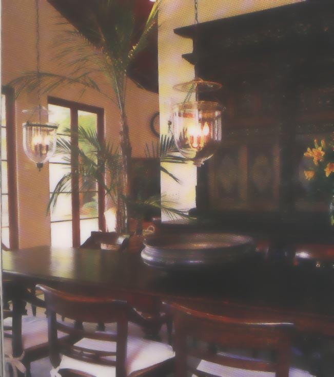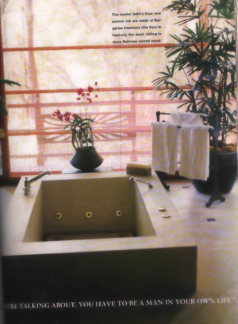 Kevin Only Knows By Mark Morrison. Photographs by Art StreiberSeptember 1999 “If I don't get a kiss," says Kevin Costner, "I'm going to feel really horrible." The lustrous blue eyes beckon as he stands on the slate deck off his bedroom in the Hollywood Hills. But the object of his affection is hardly the stuff of cinematic fantasies. "Hi, Dad," 11-year-old Joe Costner calls as he bounds across the garden in a T-shirt and shorts, followed by Wyatt, Costner’s noble-looking yellow Lab. Young Joe heads his old mans way, filling his father's arms and rewarding him with an unembarrassed smooch. Next in line for a hug is Lily, 13. It's Monday, and she, Joe and sister Anne, 15, have just arrived with the nanny (they, alternate weeks between their father's canyon-view abode and their mom's house, 20 minutes away). "Hey, how you doing?" the actor says as Lily proffers a hug "It's been too long!" He nuzzles her. "Seven days, that's too long. Let me look at you." As he does, his middle child grows shy not because he's Kevin Costner, but because he's Dad. Dressed in a white T-shirt, light-blue jeans and navy Pumas, the 44-year-old still displays the playful grin and athletic grace that helped make him a star in the late eighties. While there are glimpses of Costner, the actor-the driven Eliot Ness in The Untouchables, the idealistic farmer in Field of Dreams, the macho protector of The Bodyguard- at home, he is more apt to he a big kid one minute and the voice of reason the next. Anne has just come back from her first day of driving, class, and he cracks up when she shoves her face in his and says, "My teacher got this close to me and said, 'I want to tell You that your dad's the greatest actor ever,' and I was like, 'Okaaay…’”, But a moment later his voice drops to a confidential hush as he tells her, "I remember my driving class. They put these films on where it's all bloody-kids killed from drinking and stuff. It hits home, man. You realize in your quickness to want to get out there, mistakes that you can't come back from can be made." Mistakes are something Costner has grappled with in his own midlife. In 1994 the making of his futuristic epic Waterworld in Hawaii was upstaged by reports of an out-of-control production and an overblown ego, as well as the breakup of his 16-year marriage to his college sweetheart, Cindy. Costner remained stoic throughout, even after the added drubbing he took for I997's The Postman, and was able to recoup some box office luster in 1996 with Tin Cup, as well as with this year's Message in a Bottle. His new film, For Love of the Game (opening September 17), returns him to familiar turf: He plays a star pitcher in the twilight of his baseball career trying to reexamine his life. Costner calls the romantic drama "fairly close to the bone." While he has made mistakes, others have frequently been mistaken about him. He has often been seen as a political conservative, but the truth is, Costner is a registered independent who both golfs with George Bush and supported President Clinton at the last Democratic National Convention. And while he has been labeled by some as arrogant, that comes partly from having his own vision and the confidence to pursue it. "He's very strong in his convictions," says Kelly Preston, who co-stars in For Love of the Game "Yet he's always open to your point of view." If his two Oscars for 1990’s three-hour-plus Dances With Wolves (best director and best picture) proved anything, it's that likes to challenge conventions-onscreen and off. "I have a western ethic," he says. "I don't like people litigating my problems. I think I know what justice is. I've never minded being alone.' Of course, few people would mind being alone in the comfort Costner's Hollywood home. Four years ago, with Waterworld winding down and his marriage over, he knew he couldn't return the family homestead. So a diligent assistant found this 15,000 square-foot home (including a two-story guest quarters and gym), then owned by actor Richard Dreyfuss, and insisted that he rent it. The property was called Casa di Pace, Italian for House of Peace, and his first night there, Costner knew he had to buy it. "I thought it was going to be the loneliest night of my life, but I had the best sleep that I'd had in a long time," he recalls. "When everything should have been the lowest, the house took over in a way." It also helped that the place received his kids' approval. “I was very anxious about how my children would feel in a new environment. So I studied them as they came up the driveway, and my son, who doesn't say a lot, looked around and said, 'It's a kingdom!' And I smiled and thought, I can make this [work]." In 1995 Costner purchased the "kingdom." To make it his own, he enlisted the help of Jeffrey Beecroft, the production designer oil Dances with Wolves and The Bodyguard. But it was important to Costner that the home be more than a set design. "I didn't feel the house was open enough," he says. "I like when curtains blow into the house in an exotic way." So Beecroft enlarged the living and dining rooms and added a series of 10-foot windowed doors to catch the breeze off the Indian-slate terrace. "I wanted it to have the romance of adventure and travel", says Beecroft, who drew further inspiration from two of Costner's other passions-hunting and fly-fishing. He found carved Balinese woods, black oil jars from Burma (which he stuffed with giant birds-of-paradise and palms), and African wildlife photos by Peter Beard (modern counterparts to the Edward Curtis photos of the Old West that Costner collects). "I wanted to be proud of this place," the actor says. "People think of me as purely American. I'd like to think of myself as a Renaissance person. I can't think of anything better [than being] open and ready to step through those windows of opportunity that present themselves." Despite its size, the house conforms to Costner’s simplest needs. When the kids are aw