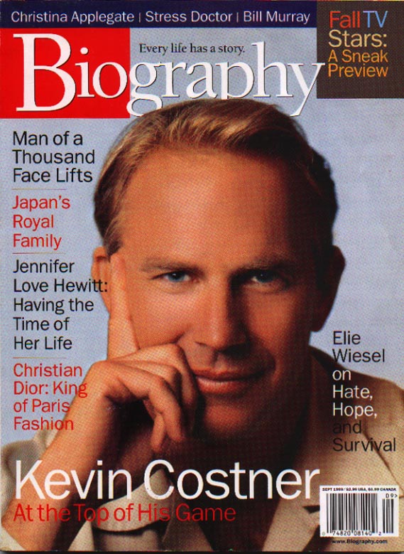 Biography MagazineBiography Magazine Written By Sheryl Altman September 1999 Kevin Costner is batting around an idea: “How would I sum up my philosophy on life?” he ponders aloud. “Sometimes you score, sometimes you strike out, but none of that matters. What matters is how you play the game.” Baseball metaphors come easily to the 44-year-old actor, director, and producer. “Maybe it’s because I’ve had a lot of practice rounding bases,” he says, referring to three baseball films, Bull Durham (1988), Field of Dreams (1989), and this month’s For Love of the Game. “Or maybe I just read it somewhere, and it sounded good.” Playful-and modest as he seems, in his 17-year career, Costner has clearly become one of Hollywood’s heavy-hit-ters. Dances with Wolves, his directorial debut, in 1990, won seven Oscars, including Best Picture and Best Director, and this year’s sentimental Message in a Bottle was No. I it’s opening weekend. Which isn’t to say every movie has been a winner: Waterworld, critics still snicker, was all wet. “Look, I don’t regret anything I’ve done, because it’s always been my choice.” Costner tells Biography Magazine. “I loved Waterworld. I loved Wyatt Earp. I loved postman. Each one moved me, challenged me-and hell, I challenged a lot of people in the process of making them.” That said, he’s not exactly known in industry circles as team player. Studios clamor for slapstick comedies (“bathroom humor,” he sniffs), while Costner churns out three-hour-plus historical epics with third of the dialogue in the Sioux language. “People tell you, ‘It’s done this way,”’ he says. “Well, why? And who says so? Who says a movie has to be a certain length or subject matter? I don’t make movies to fit conveniently into your dinner plans. I make movies that have a message. And if that means refusing to be bullied by Hollywood hot shots, damning the critics, or turning down roles with $20 million salaries, then so be it. Costner, with his aw-shucks Oklahoma accent, lopsided grin, and bashful-boy persona, can act like a tough guy when he needs to. “When I believe in something, I stand behind it,” he says. Case in point: When ForLove of the Game ran into preproduction budgeting problems (it was shot on location in Yankee Stadium with a couple of thousand extras), Costner sacrificed his salary to see it completed. “Whatever the situation-personal or professional-you have to be true to what you stand for,” he says. “It’s not hard for me to look forward, and it’s not hard for me to look back on my life, because I know one thing@ I’ve always kept my eye on the ball.” Kevin Michael Costner was born on January 18, 1955, in Lynwood, California,: and raised in neighboring Compton. He was the younger of two sons-his older brother, Dan, was born in I brother, Mark, died at birth. The Costner clan came to C from Oklahoma, after his p grandparents on his father’ family farm during the great dust-bowl disaster in the 1930s. “Mygrandparentslost everything, a la The Grapes of Wrath, and they came out in Model-A Ford to California,” Costner says. “All they took with them was what they could carry.” His father, he says, was haunted by his history. “It shaped him,” Costner explains. “He saw his dad lose everything.” In Compton, a lower-income suburb of Los Angeles, Bill Costner briefly dug ditches to support his wife and young sons before settling into a job servicing electrical lines for Southern California Edison. “He stayed with the same company his entire life,” Costner recalls. “He’s a noble man, a great man. He probably could have taken other jobs, but he never wanted to jeopardize our financial security. He would look at us sometimes and say, ‘I wish I could do more, but there can be lean times out there-you’ve never seen it.’ He saw it, and he couldn’t forget it.” Bill Costner’s work took him to other parts of California-Santa Paula, Ojai, and Ventura and he moved his family along with him. “There was a lot of upheaval,” Costner recalls. “I was always the new boy in school-I was like an Army kid.” He was a small, awkward boy-always the shortest in his class who ran around in muddy dungarees, with a homemade bow and arrow over his shoulder. “I’d hunt rabbits and squirrels and sell the pelts,” he says. “We never had a lot of money. I wasn’t the kid who had two pairs of tennis shoes. That’s not to say ‘Woe is me,’ it was just reality for us. If my basketball got popped, I didn’t get another one.”