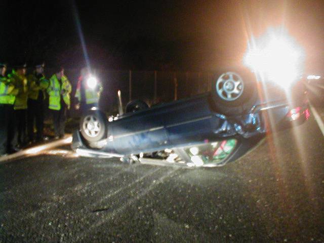 I was flying along the motorway, most probably a little bit over speeding in Brendan's landrover about half past eleven, twelve o'clock at night and something was just about to overtake me on the inside and I got a front wheel blow out, nothing more exciting than that really.