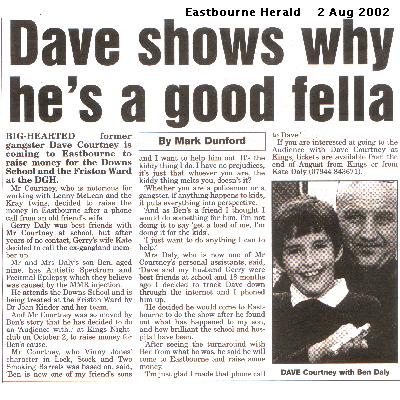 Here is the local Eastbourne Herald, reporting on Daves visit to Eastbourne and the good work he is doing there by raising money for The Friston children's ward and The Down's special needs School.