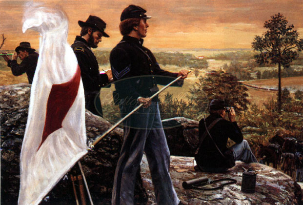 Above (Centered): Union Troops keep a close watch for Confederates as they camp on Little Round Top. Their Objective(s): The main objective(s) of this battle, for the Union, was\were to hold their lines, and make sure that the enemy did not push past them, and proceed Northward. |