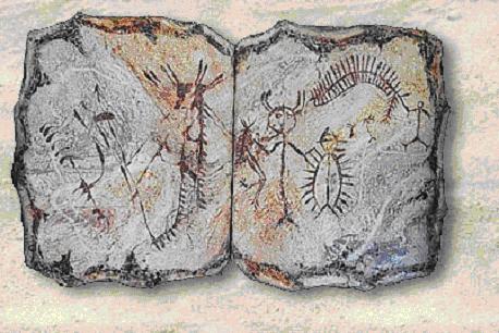 There’s this one guy with horns, maybe the Devil, and another guy swinging something resembling either a tree or fish bones around. And on the other side, there are just lines. Maybe it’s me, but you don’t have to be advanced to draw stick figures. Nice going, you managed to make yourself immortally stupid. F.