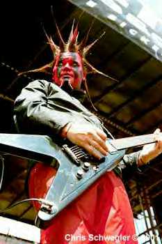 sPaG and his cohorts have been pushing the envelope for four-and-a-half years, ever since Mudvayne first conspired together in the forbidding wastelands of Peoria, Illinois, circa 1996. sPaG, Kud, and Gurrg, with a different bass player (Ryknow came aboard two years later), found each other after ten years in the usual maze of local outfits, immediately sharing a vision of their own musical apocalypse.