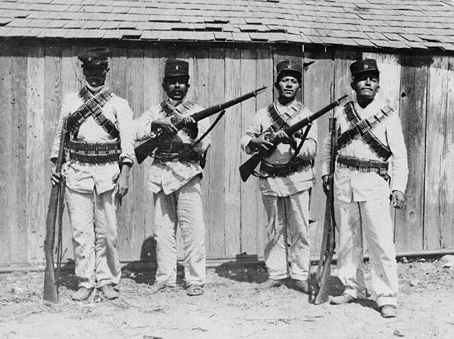 Mexican Century Guards in 1911. The guards carried rifles, loaded with ammunition, all day.