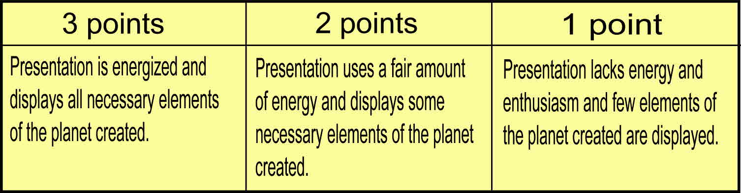 There will be two grades for the project. An average will be taken between the grade for the worksheet and the planet creation project.