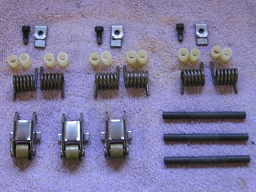 The springs have six coils and are made from a slightly thicker wire. * * * Here we can see the parts installed and ready for the springs to be hooked onto the roller arms.