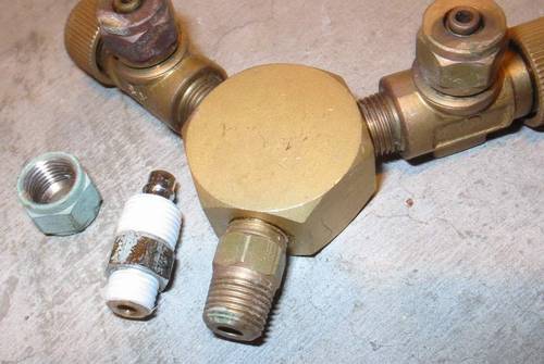 With the connector carefully removed, I fixed some plumbers' tape to the splitter threads until...... |
