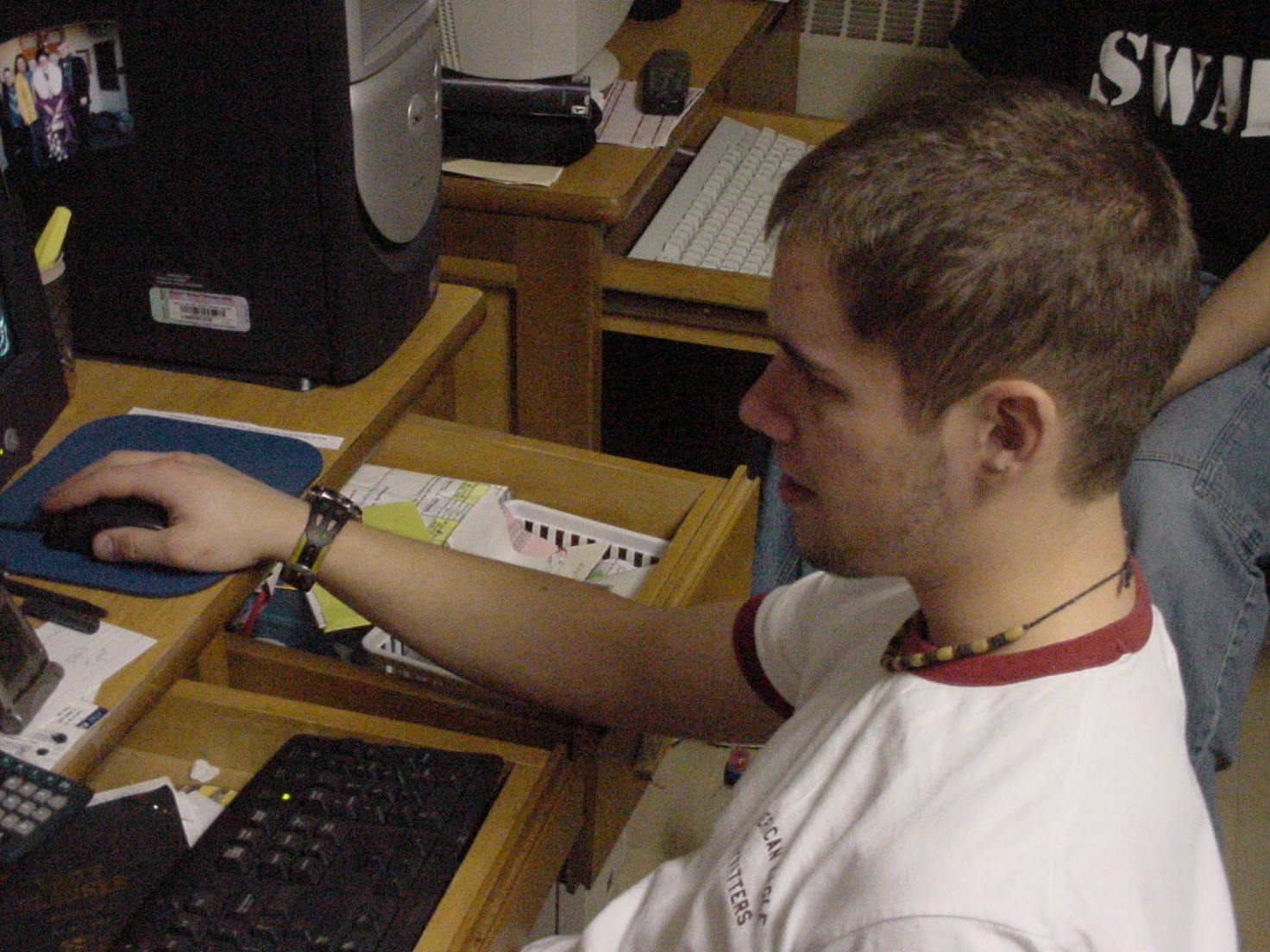 Here's me and Matt on our comp's...he's doing work for a class and I'm playing Diablo II cuz I'm gay