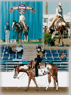1988 APHA Overo Mare. "R.C." has proven herself as a great show horse and dam. Winner of over 200 points, two Res World Championships in Western Pleasure and a Top 3 in Hunter under saddle all in TWO years. Not many horses let alone mares have that kind of record. She has produced Mr Park A Jet (superior & honor roll NA hunter under saddle,EQ,Showmanship), Miss Skiptacular(California top 5 2yr old HUS) , Is It The Chad (Resv Champion 2yr old Western Pleasure 2004, 2nd on the national Honor Roll, Numerous futurity winner) "Regal" is her 2004 Dark Chocolate overo Colt by the Landcruiser INQUIRE IF INTERESTED. Bred to Slightly Zipped (6x World and resv World Champion Western Pleasure) for a April 2005 foal INQUIRE IF INTERESTED