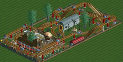 Thanks, Peter. There's so much stuff in this track pack that it's almost scary. Eighteen rides in all. Almost all the theming groups are represented. The Ghost Train is an unusual gentle ride - if designed incorrectly, it will crash. Taking large turns in excess of 20 mph could turn your peeps into ghosts! Like most gentle rides, the longer the ride, the higher the excitement rating. Unlike others, adding drops will provide an excitement boost. Since drops increase the speed of the ride, decreasing the ride time, it's a good idea to add brakes or a hill soon after a drop. Building curved tracks over paths will provide an excitement boost. Most of the rides in this track pack are designed so that track is positioned above the path adjacent to the ride. The first six rides all have this feature. A spinning tunnel is a "must have" for a Ghost Train. It adds 0.09 to the excitement rating for first tunnel. Additional tunnels are optional, as they do not change the rating. If you are interested in advanced study in art of Ghostbusting, check out Ghostbusters.net. Or simply remember that, "If the ionization rate is constant for all ectoplasmic entities, we can really bust some heads .. in a spiritual sense of course" (Dr. Raymond Stantz, played by Dan Aykroyd). Download Ghostbuster Track Pack