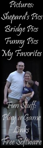 Highlights The page with pictures of the Kennedy Covered Bridges in Rush Co. has been edited. There are new pictures mixed in with the old ones. Check out the free software page. My links page has a hidden gem or two. Remember to check out the game. I didn't create it, but I thought you might enjoy it. This is one of my favorite games! I have added pics of the house we are buying: House Pics UPDATE: We bought the house. I deleted this page, but will add it back at some time with before/after pictures. Happy browsing and thanks for stopping by my virtual home where the doors are always open. Nicky |