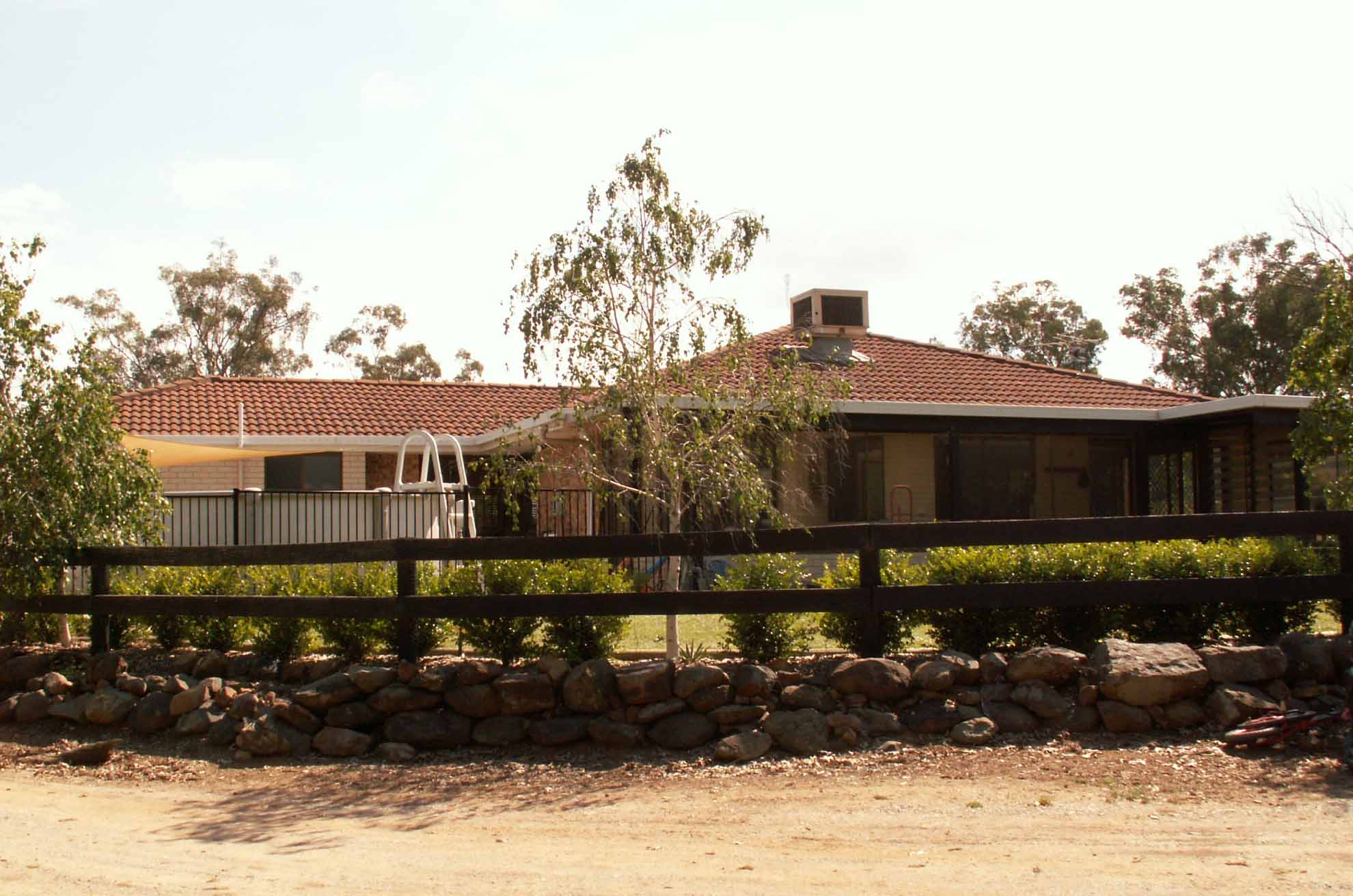 THE HOUSE: 5 bedroom 3 bathroom brick and tile. The house consists of 3 bedrooms and a study or 4th bedroom (all bedrooms have built-ins). Main bathroom with shower and bath and separate toilet. Main bedroom has an ensuite bathroom and walk in robe. Spacious lounge room, separate dining room, large eat in kitchen with dishwasher, electric oven and stove and laundry. Out the front their is a paved patio for entertaining and out the back is a large enclosed sunroom. The fifth bedroom is a granny flat which is adjoined to the house but has separate entrance and consists of a large bedroom with built in robe and ensuite bathroom. The house is heated in winter with a wood combustion fire and cooled in summer by an evaporative air conditioner. Cool off in summer in the 4.5 metre round above ground swimming pool. Daily mail, ADSL broadband, garbage collection and school bus service. The property has established gardens, a delightful outlook and is very peaceful.