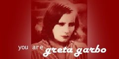 <a href="https://www.angelfire.com/retro/ladystardust/starquiz.html"><img src="https://www.angelfire.com/retro/ladystardust/greta.jpg" border=0></a><br><font face=arial size="1"><a href="https://www.angelfire.com/retro/ladystardust/starquiz.html">Which Old-Hollywood Movie Star Are You??</a> |